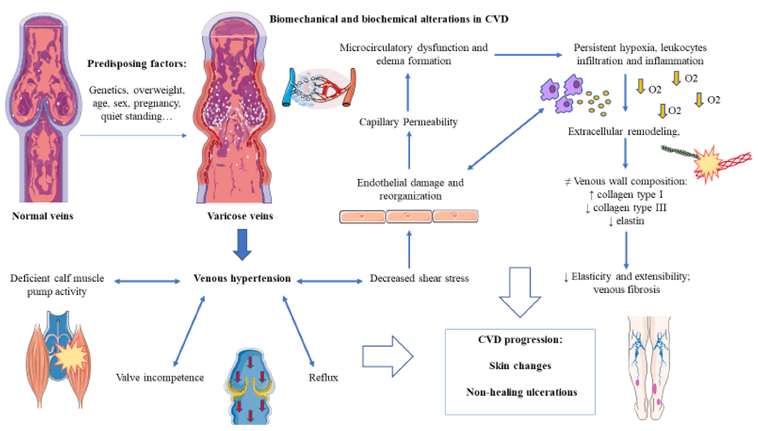 Nếu nhìn một cách giản dị, cả suy giãn tĩnh mạch và trĩ đều là hậu quả của áp lực tĩnh mạch tăng kéo dài. Ở chân, đó là áp lực do đứng lâu, ngồi nhiều, ít vận động, tuổi cao. Ở hậu môn, áp lực lại đến từ táo bón, rặn nhiều, ngồi lâu, mang thai. Khi áp lực tăng liên tục, máu tĩnh mạch không hồi lưu tốt về tim, gây ứ trệ, làm thành mạch giãn ra, van tĩnh mạch yếu dần, mô liên kết nâng đỡ quanh mạch máu bị thoái hóa. Kèm theo đó là tình trạng viêm mạn tính âm ỉ, khiến bệnh tiến triển ngày càng rõ. Vì vậy, có thể nói một cách ngắn gọn nhưng chính xác rằng: trĩ thực chất là suy giãn tĩnh mạch xảy ra ở vùng hậu môn – trực tràng.