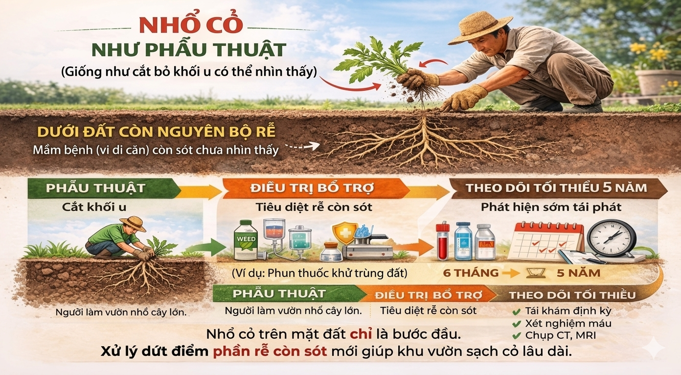 Nói một cách hình ảnh: Phẫu thuật là bước đầu của chiến thắng. Điều trị bổ trợ là bước bảo vệ chiến thắng đó. Và theo dõi lâu dài là cách giữ cho chiến thắng ấy bền vững.